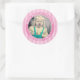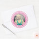Your Photo Simple Stripes Pattern Pink/White Classic Round Sticker