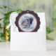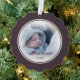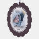 Perfect for grandparents, this Christmas ornament features your own photo with personalised name and year and a dusty plum accent trim. This ornament includes a hazy effect around the edges of the photo and works with a variety of coloured backgrounds, where the subject of your photo is just slightly above centre, with a good amount of space between the subject and the edge of your photo; the closer your subject is to the edge of your photo, the more it will fill or over-fill the photo area of the ornament. And you can customise this ornament right on the product page!