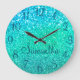 Your Photo with Ocean Blue Numbers and Name Large Clock