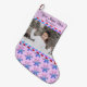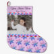 Your Pic/Text Pink Blue Stripes Glitter Snowflake Large Christmas Stocking