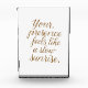 This turned out to be a great looking item. I found altering the design easy and the quality looked fab when all was done and finished. It matched my expectations wonderfully. The seller did a great job! The colours and font styles available were varied and I had fun tweaking them to my needs. The quality of both photo and the colours used where crisp too and came out wonderfully. Overall a great looking item very happy customer. Thank you!!