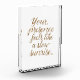 This was a great product for an internal Awards event. Nadja R's brilliant graphic design work was mocked up digitally and then printed onto very high quality materials. I had a bespoke set of requirements and a really tight deadline and Zazzle came through. The end result was a real talking point for the Awards event and the base also not only helped with the stability, but it also looked like it had a light inside when the Show lights hit the Awards Trophies at certain angles. Thank you Nadja and Zazzle.