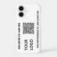 Choose Colours and Font - iPhone Cases with Your QR Code Info , Custom Text and Logo Personalised Modern Gift - Add Your QR Code - Image and Logo or photo / Text - Name - Custom Text - Info / more - Resize and Move or Remove / Add Elements - Image / Text with Customisation Tool. Choose / Add Your Favourite Background and Text Colours / Font / Size ! Please see my others projects / designs. You can also transfer this designs to more than 1000 Zazzle products. Good Luck - Be Happy :)