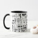 Tired of people using your mug in the break room? Create a very extremely personalised coffee mug. Your custom name appears all over this mug in a collage of different fonts and lettering styles. Black lettering is set against a white background.