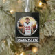 Custom ornament featuring your sports photo with personalised name, player number, and year in bold collegiate typography. Type the text however you wish to fit. Try it out to see how it looks!