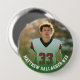 Custom pin button with green gradient featuring your sports photo with personalized name, player number, and team name, school, city, year, or message in bold collegiate typography. Ideal for teams with the color green. Suitable for any photo, all ages, of any sport. Test it out to see how it looks! To make further edits, enter the design tool, if needed.