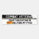 Your Tailgating is Not Helping My PTSD is a bumper sticker for veterans who suffer from PTSD and would like to send a message to tailgaters. Whether you served in Vietnam, Korea, Iraq, Afghanistan or another country, this is for you of a gift for a vet in your life no matter if they're Army or another military branch. Features the digital camo camouflage print.