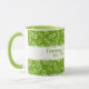 The background is a random number pattern created with a white milestone number 100 repeated and scattered randomly on a green background. You can change the centenarian message text to your own words, name, initial, or monogram. The design is for a milestone, 100th birthday gift or, party favours.