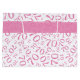 This design is a pink and white random number pattern with milestone number 70 repeated in varied sizes and angles in an all-over print. There is a pink band and a gift tag, printed on the front, with text templates so you can easily personalise the design.