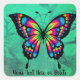 Your Text Bright Pink & Blue Butterfly Turquoise Square Sticker