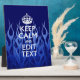 Your Text for Keep Calm on Blue Racing Flames Plaque