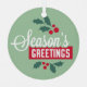 Your Text on Back, Retro Season's Greetings Round Metal Tree Decoration