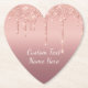 Your Text Rose Gold Blush Glitter Sparkle Drips Paper Coaster