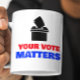 Image of a black ballot box with the words "Your Vote" in red typeface under it. "Matters" is beneath that in larger blue letters. Voting matters! VOTE for democrats up and down the ticket.