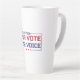 The image shows the lettering "YOUR VOTE YOUR VOICE" in clear, modern typography. The message emphasises the importance of elections and political participation.