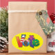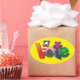 Wish it had some lettering on it, but such a cute design. No lettering. Another one of the few that come in oval without sacrificing graphics.