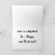 This card is great fun and good quality. I loved the humour inside and on the back. There is the opportunity to change the orientation of this card from landscape to portrait, which I did. It is relatively straightforward to amend the typeface to fit the new orientation. It was well packaged with no plastic. The printing on this card is excellent.