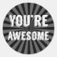Tell someone they're awesome...with a sticker! Bold text and starburst design.