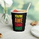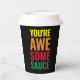 With the compliment, "You're Awesomesauce", styled in a tall block font with four bold hot pepper colours on a solid black background, these paper cups are the perfect way to toast someone special on World Compliment Day (March 1) -- or any day that you feel like making someone's day, at a party, or even at the office!
