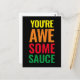 With the compliment, "You're Awesomesauce", styled in a tall block font with four bold hot pepper colours on a solid black background, this postcard is the perfect card to send to someone special with on World Compliment Day (March 1) -- or any day that you feel like making someone's day, at a party, or even at the office!