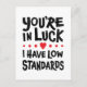 You're In Luck I Have Low Standards Postcard