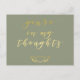 NewParkLane - Elegant sympathy postcard to express your condolences, or to wish someone who is sick well, with quote 'You're in my thoughts' in gold, brush script typography, with a gold winged heart, against a sage green background.