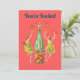 You're Invited Card featuring two women dancing around a glass bottle with flowers and oranges. Retro design with a twist. Captures the joy of celebrating an event. Customisable messages or information on both front and back. Change it to anything you like.