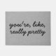 "You're like really pretty" funny rustic chic faux jute linen burlap shabby cottage chic country french style decor doormat with saying.