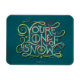 FANTASTIC BEASTS AND WHERE TO FIND THEM™ | This ornate typography graphic reads: You're one of us now. This graphic is coloured in a green to yellow gradient.