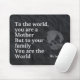 Add love and elegance to her workspace with the You're Our World Mum mousepad. Featuring a sleek black background elegant like a night sky and minimalist design, this mousepad is the perfect blend of style and sentiment. Personalise it with her name or a heartfelt message to make it truly unique. A thoughtful and modern gift for her, perfect for Mother’s Day, birthdays, or just to say “thank you.” Make every click a little more meaningful with this functional desk accessory she’ll cherish every day.