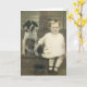 Write your own message on this card with a young child holding onto the family hound's leg