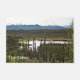 A view of the Yukon taiga. Customisable text reading, "The Yukon" also appears. The taiga, or boreal forest, covers vast parts of the high-latitude north from Northern Europe through European Russia and Siberia, to Alaska and Canada, between the steppes to the south and the treeless tundra farther to the north. The taiga is chraacterised by all but endless conifer forest, the swampy land dotted with lakes and ponds. Black Spruce, Picea mariana, are very common and takes on a columnar form when growing in wet terrain as in this view from near Beaver Creek, Yukon Territory. During the summer mosquitoes can be unbelievably numerous.