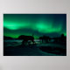 Yukon Quest Magic: Silhouette of sled dog team pulling sleigh with musher under the northern lights.