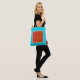 A trendy tote bag in blue aqua with a red/orange centre design makes this tote a popular choice! A special design that your friend will envy! Also a great colourful and practical gift for her!