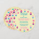 Fun! Fun! Round birthday party invitation has 3 different colourful cupcakes in a pattern around the outside of the circle. Personalise with all the party invitation using the easy templates provided. The reverse side of the invite has a pattern of cupcakes all around the centre. On the outside is a yellow border which has various activities the kids will be doing and what they'll be eating. Personalise those words to reflect your plans for the party. Also available in our shop is matching paper plates, cups, wrapping paper, etc.