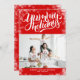 Yummy Holidays Red White Lettering Custom Photo Holiday Card