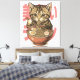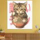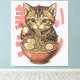 This delightful illustration is the purr-fect fusion of irresistible cuteness and vintage poster flair. At the heart of the design is an adorably wide-eyed kitten, rendered in a warm, hand-drawn style that feels straight out of a nostalgic Japanese noodle shop advertisement. With tiny paws grasping chopsticks like a pro, the kitten slurps up a swirl of ramen noodles from a steaming bowl brimming with classic toppings — soft-boiled eggs, seaweed, scallions, and narutomaki — all illustrated with rich texture and inviting warmth.