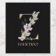 Letter Z monogram floral. Letter Z in golden brown texture accented with green watercolor compound leaves, flower blossoms and gold dust. Personalised with name in matching font.