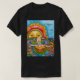 I give wanted to give this a 4 instead of a 5 because these Basic DARK T0shirts run unexpectedly SLIM or Narrow. Which is great if you do not have a potbelly, but I have a paunch. It isn't the shirt's fault that I've got a beer belly. The design and shirt itself is a quality cotton shirt. The color is more of a deep purple, but still a very pretty color. The Basic DARK T-shirts run a bit SLIMMER than the Basic Ts. The neck is a fraction narrower (or seems to be narrower) also. I'm a paunchy middle-aged woman and my neck is 12 inches (31cm) thick and the neckline fell about the same as in the photo of the man, and I had the desire to tug it a bit. So if you're a thick necked man or like loose shirts, be aware these are slimmer shirts. Once I get rid of my lockdown paunch it'll look great. The shirt washed well in cold water with no apparent bleeding. We don't have a dryer, so it hung dry. Did not shrink. Love the colors and the design. The design looks smaller on my shirt than it does on the model on-line. But still, it looks good on the shirt. The printing looks as it does on the model, just the size seems fractionally smaller. Washed garment in cold water, hung dry and design appeared unaffected.