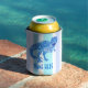 T-Rex Dinosaur Colourful Prehistoric Animal Custom Personalised Can Cooler. Background colour can be customised. Dinosaurs are cool! This colourful Tyrannosaurus Rex is done in my abstract stylised slices of colour style. Fun for your favourite paleontologist, fossil hunter or dinosaur geek. Roaring T Rex creature done in shades of azure, sapphire, midnight, royal, cobalt, lapis, indigo and cornflower blue.