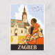 Zagreb, Croatia. Woman is looking a city cathedral from a street cafe.