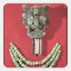 Pre-Columbian's Zapotec pectoral in the form of a mask representing the bat god, Piquete Zina, from Monte Alban, Oaxaca (jade) and an Olmec necklace made from 90 gourd shaped beads, from La Venta, Tabasco (slate) located at the Museo Nacional de Antropologia, Mexico City, Mexico.