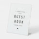 This guest book sign features a contemporary font and modern minimalist design. Use this template to edit the fonts, font colour, and background colour to match your event needs. The simple black and white colour combination makes it the perfect addition to any event. Use this poster for your wedding reception, bridal shower, couples shower, etc.