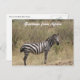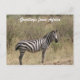 Greetings from Africa postcard featuring lone zebra in the wild in Kenya - fully customisable wording.