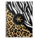 Custom monogram zebra and leopard print pattern spiral notebook. Perfect for a journal, taking notes, work, school and home. Makes a great gift for all occasions. Click the "Customise it!" button to change the text size, text colour, font style and more!