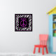 This poster features black and white zebra stripes accented in Purple. Purple peace sign and the word "PEACE". It is perfect for teens and pre-teens who are into animal prints and/or peace sign decor. Also available in Pink, Lime Green and Turquoise Blue.
