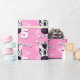 Birthday wrapping paper in bright pink with a zebras face design. Personalise this zebra art birthday paper with your child's name and age. Currently reads Happy Birthday Olivia 4 today. Zebra face painted in watercolor and designed by Sarah Trett.