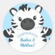 Zebra Baby Shower Safari Blue Boy Classic Round Sticker