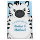 An adorable cartoon zebra baby shower design that is perfect for a safari party! The cute zebra has a blue background that makes it great for a boy on the way!