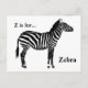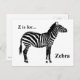 Zebra - Black and White Postcard